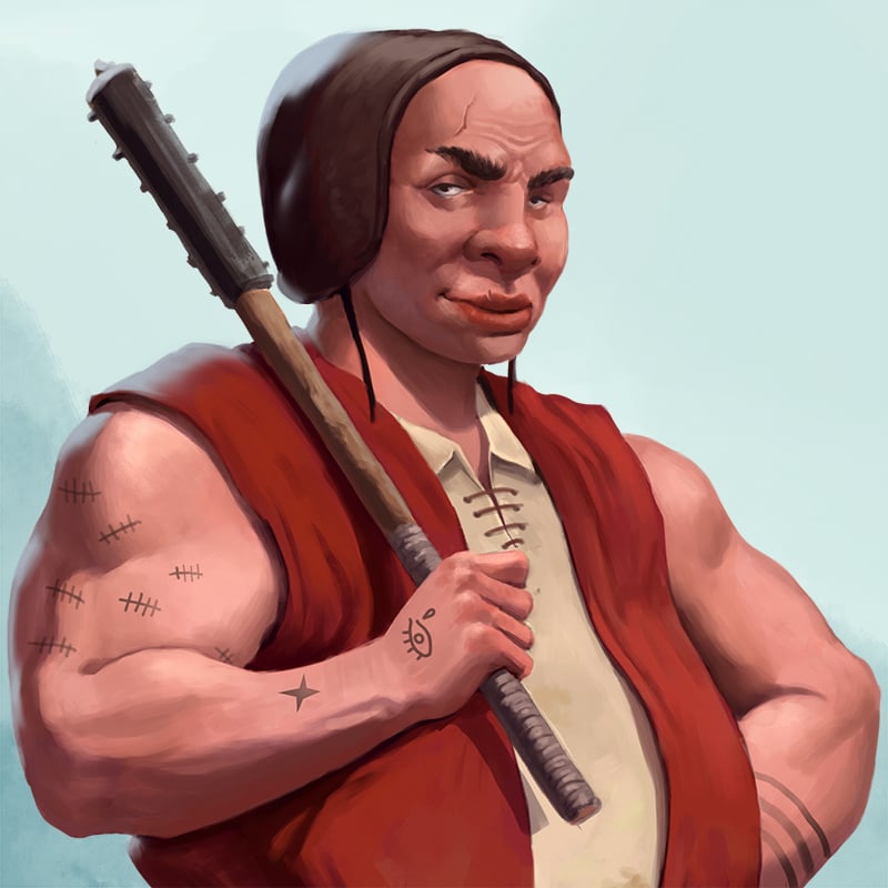 I call this guy Big Ham. He's your average thug that likes to take advantage of villagers. Perfect get his ass kicked by your party of heroes. You can call him anything, give any story you want, of course, use him the way it fits your project best!